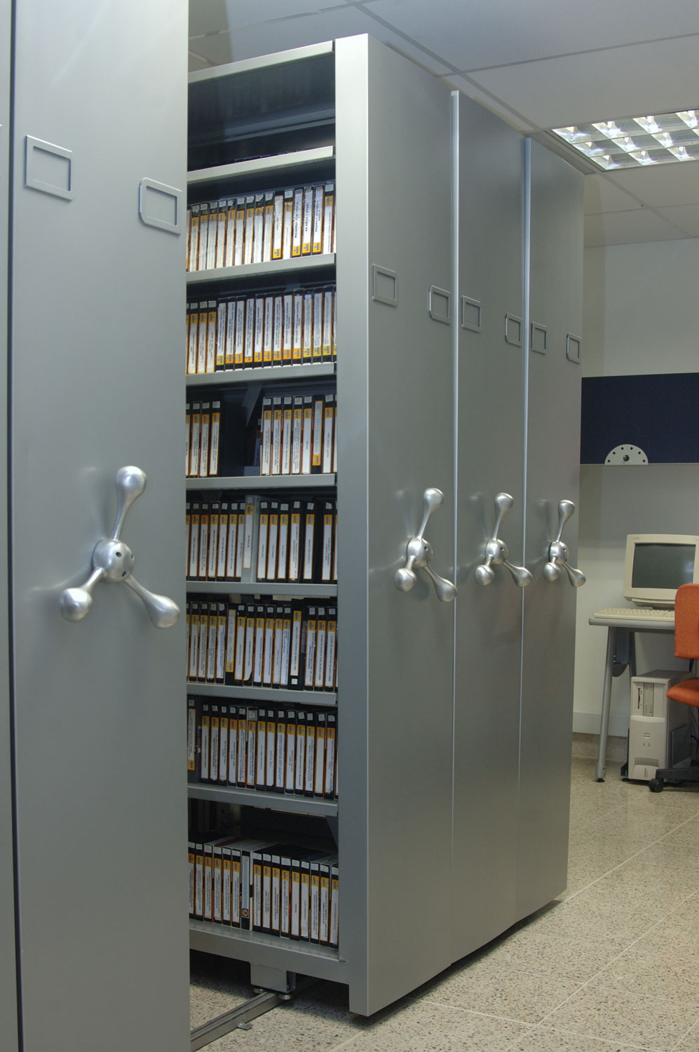No solo cumplimos con las normas nacionales, sino que también nos adaptamos a las necesidades de cada empresa diseñando archivos adecuados para espacios y áreas especificas que garantizan así la optimización y mejor uso de los espacios. Además, facilitará los movimientos del archivo ya que lo rodamientos son totalmente suaves permitiendo que el manejo de este lo pueda realizar cualquier persona.