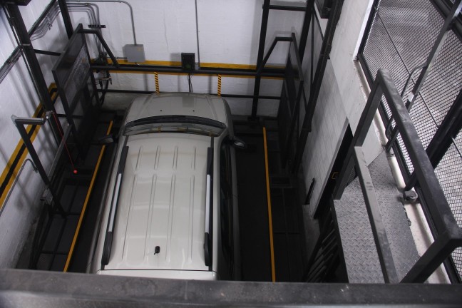 Adicionalmente, este elevador de carros es utilizado en sistemas de estacionamiento donde el conductor es quien desplaza los carros. Por tanto debe asegurar sistemas de seguridad para el transporte de carros y personas. Tales como: Puertas de seguridad, sensores de disponibilidad de la rampa, mallas metálicas para demarcar el espacio de descenso de la plataforma, sistema de paracaídas debajo de cabina para regular la velocidad del equipo, sistema de agarre según guía, sistema hidráulico que se bloquea en caso de fallas, sensor de sobrecalentamiento del aceite en tanque de bomba hidráulica, sistema de puertas foto celda que si se interrumpe no se acciona, entre otros.