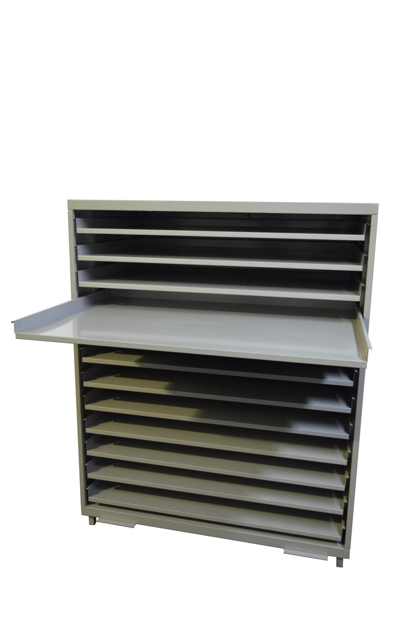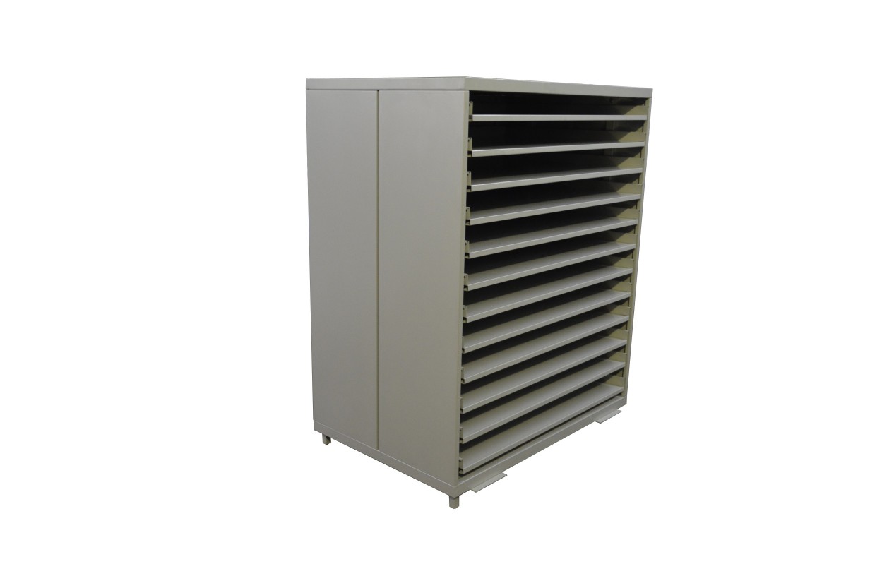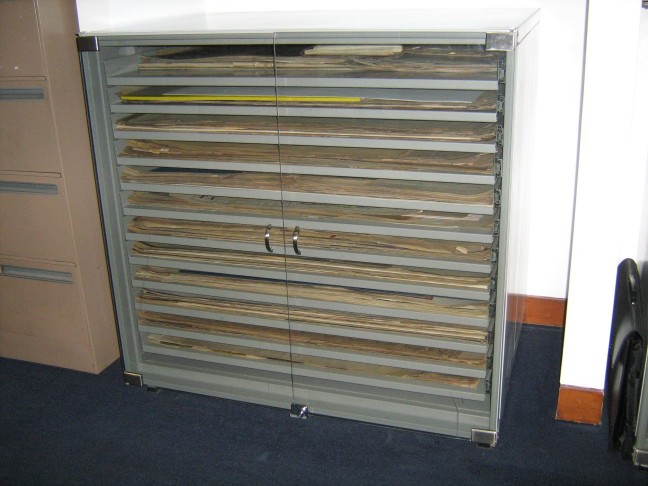La conservación de planos importantes y de gran antigüedad son almacenados en cajones metálicos construidos en diferentes combinaciones de lámina CR, su almacenamiento no requiere el uso de portaplanos y su consulta se hace mediante la extracción total del cajón
