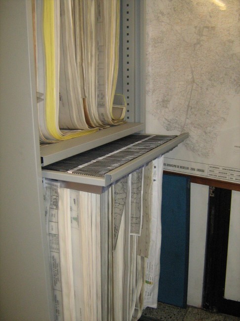 Dentro del estante se dispone un carro planera el cual se extrae para tener acceso a los planos.